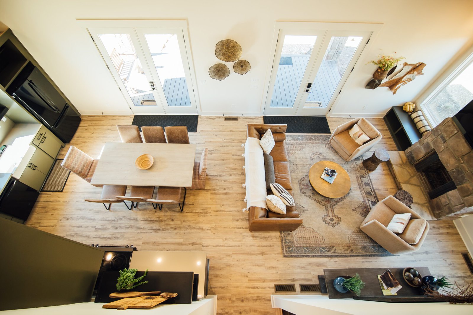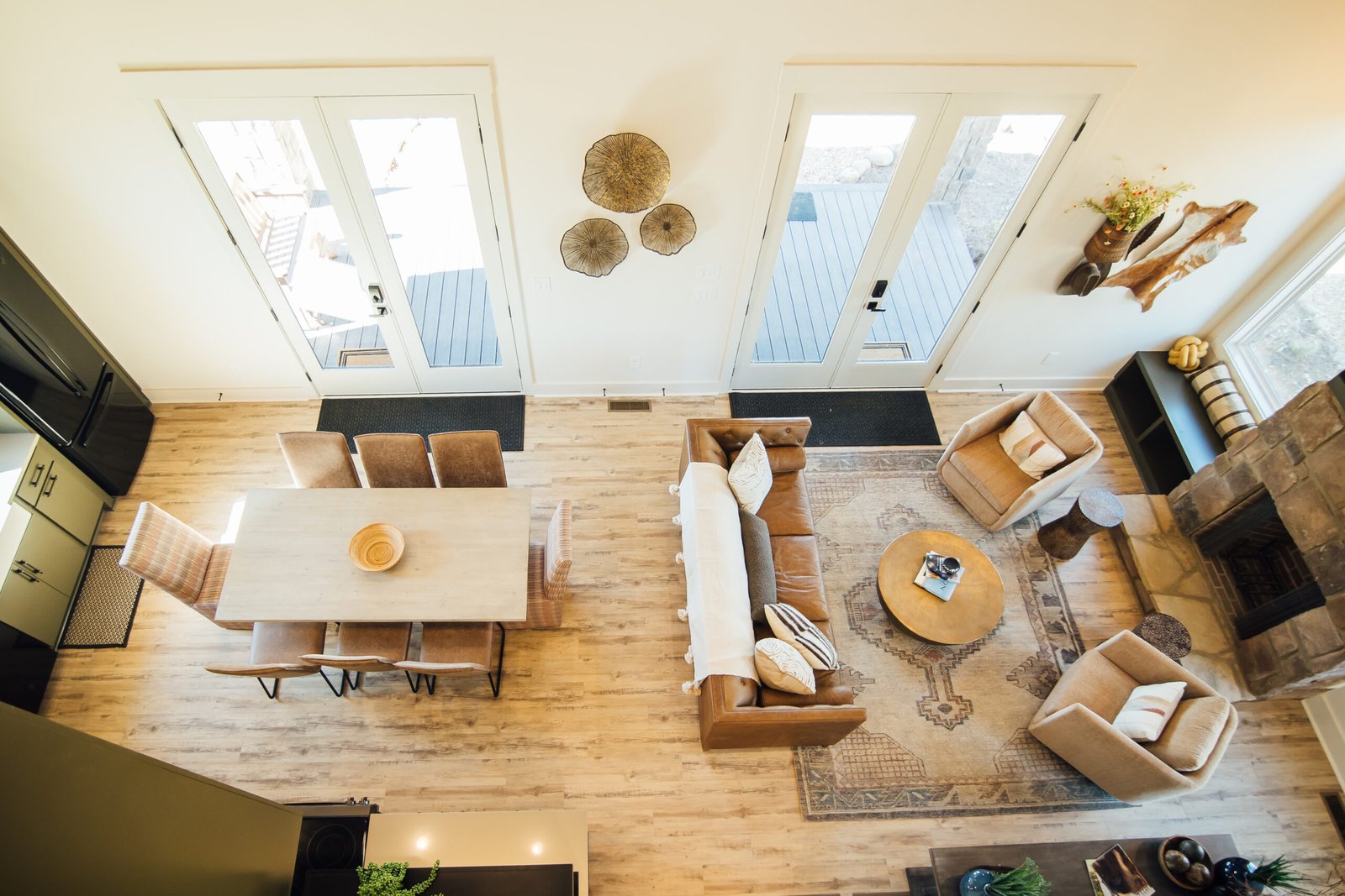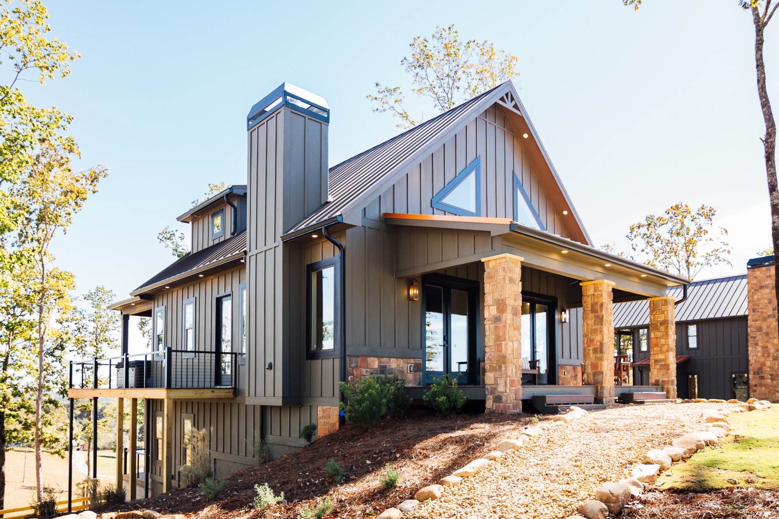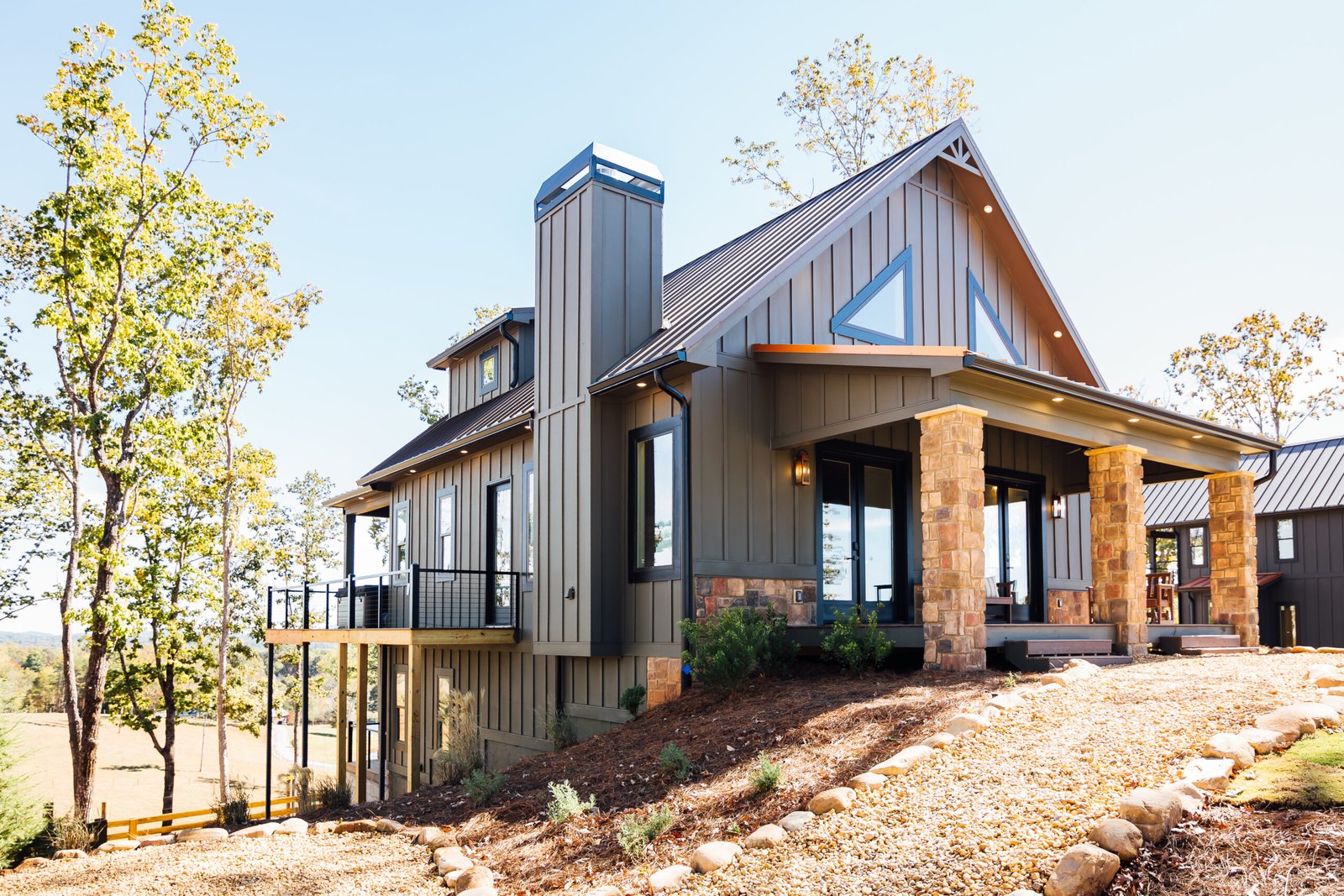A Grand Floor-to-Ceiling Stackstone Fireplace