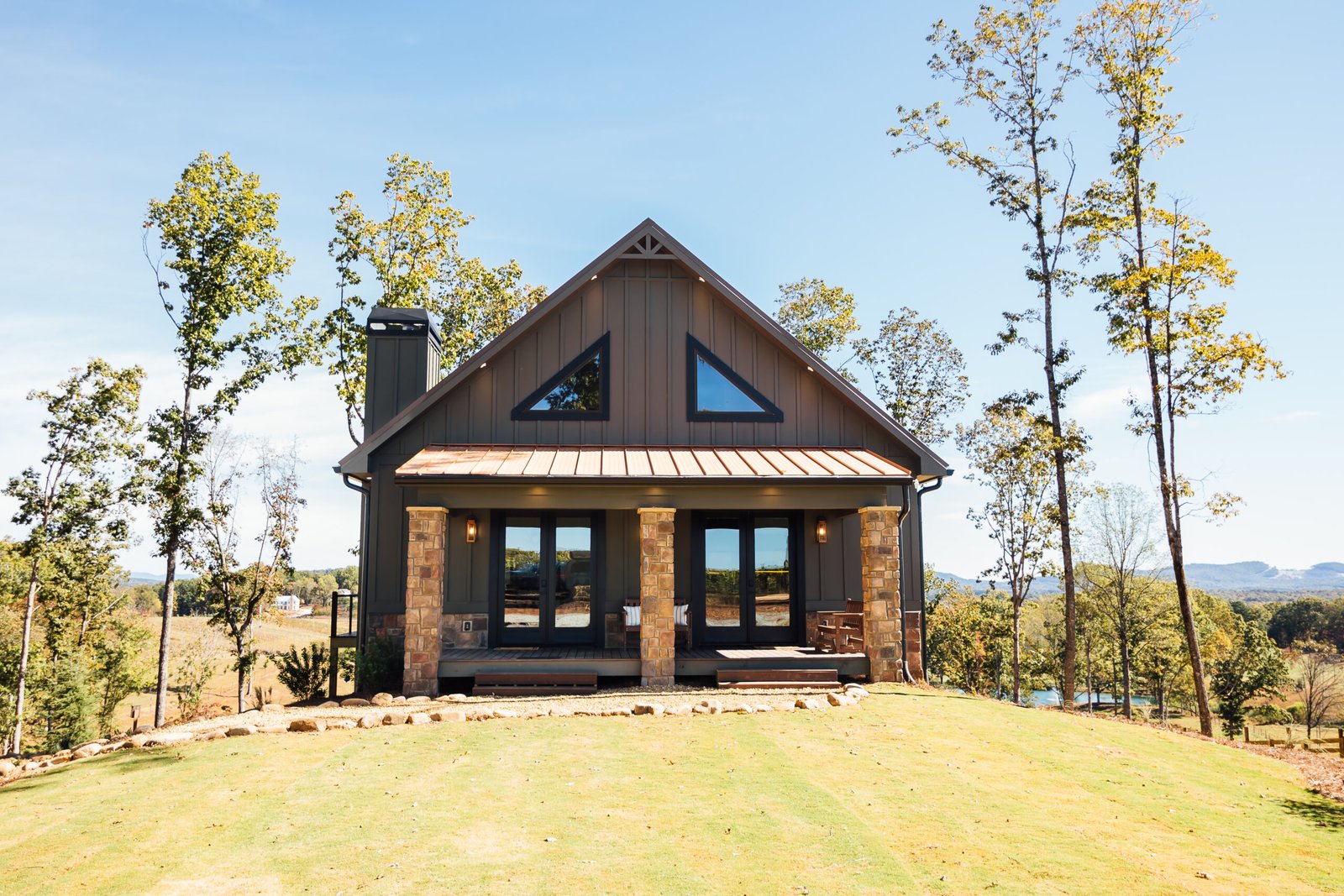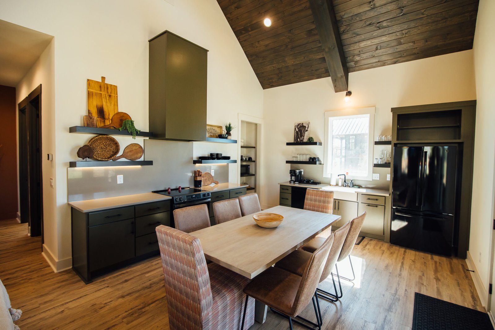 Experience the pinnacle of luxury mountain living at our flagship Sunset Lodge. This expansive retreat offers unparalleled comfort for large families and groups, featuring five beautifully appointed bedrooms across three levels. A cozy wood-burning fireplace invites you to unwind in warmth and style after a day of mountain adventures. Watch spectacular sunsets paint the North Georgia mountains while our bison herd grazes peacefully below. With premium amenities and breathtaking views, Sunset Lodge delivers an unforgettable mountain escape that perfectly balances adventure with refined comfort. Perfect for wedding guests, family reunions, and group getaways, Sunset Lodge is designed to bring people together while offering enough space for everyone to have their own retreat within the retreat. Gather around the impressive 95-inch TV for movie nights and shared entertainment that brings your group together.