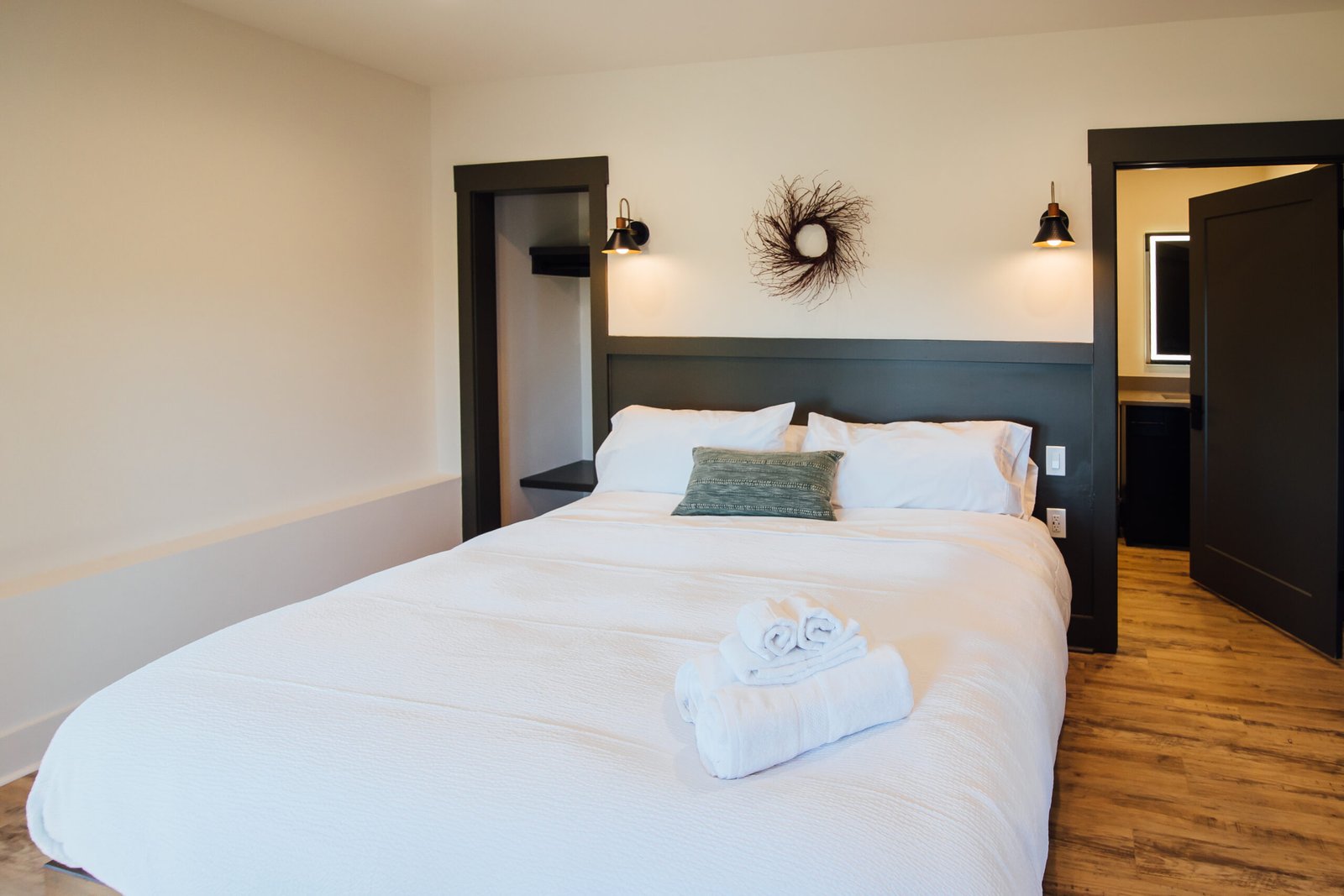- Master Bedroom: King bed + full bathroom