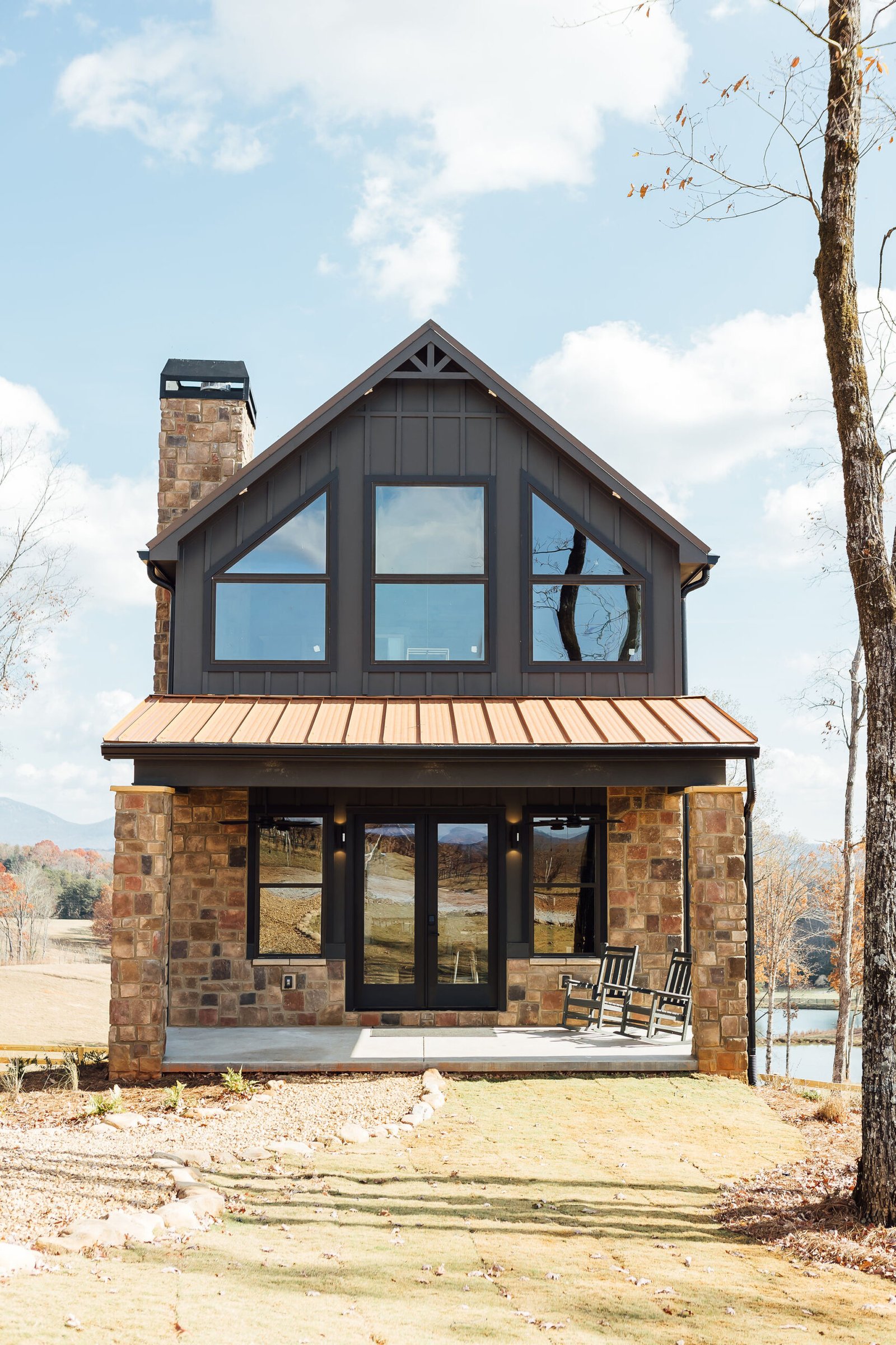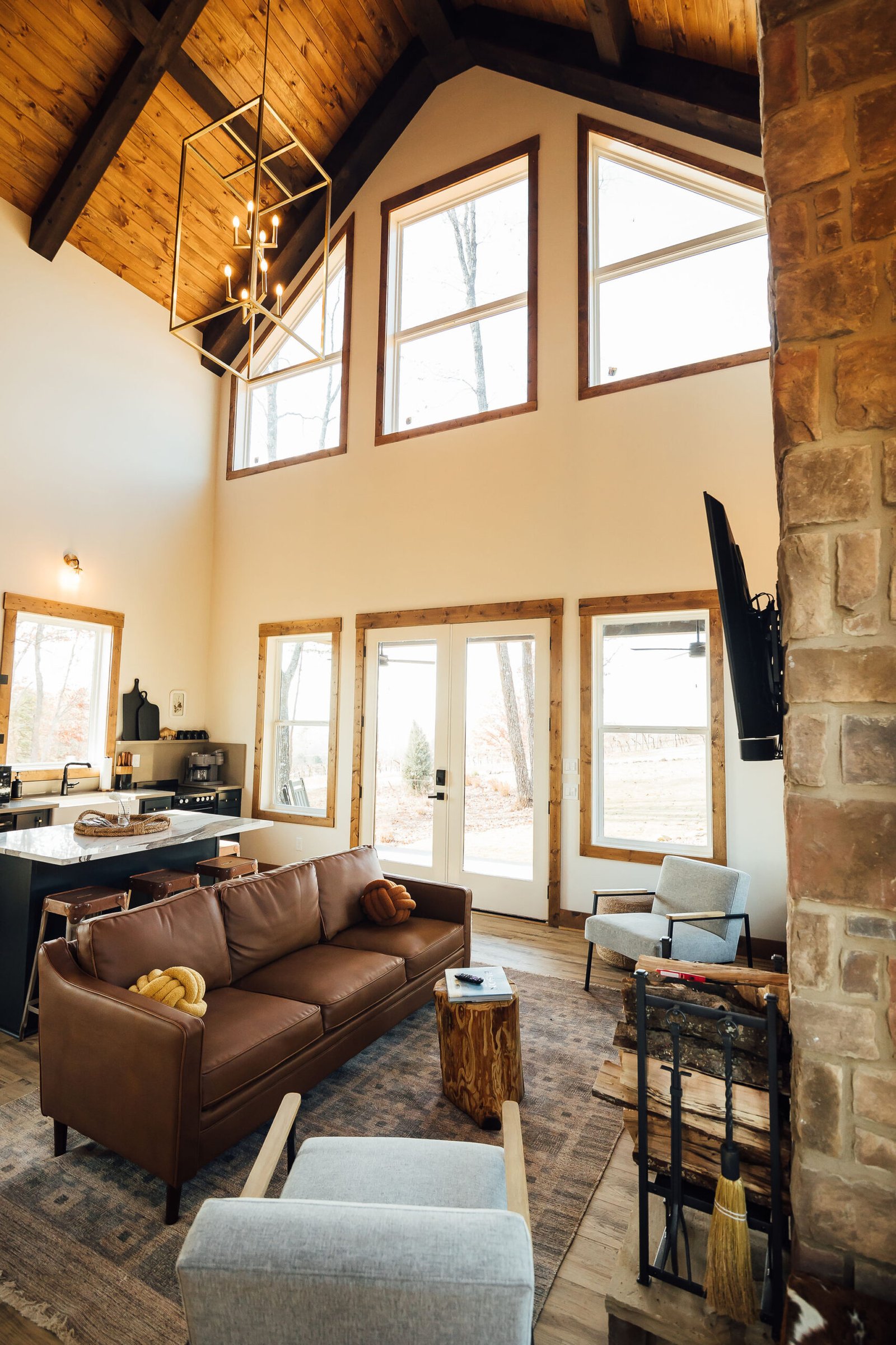 A Grand Floor-to-Ceiling Stackstone Fireplace